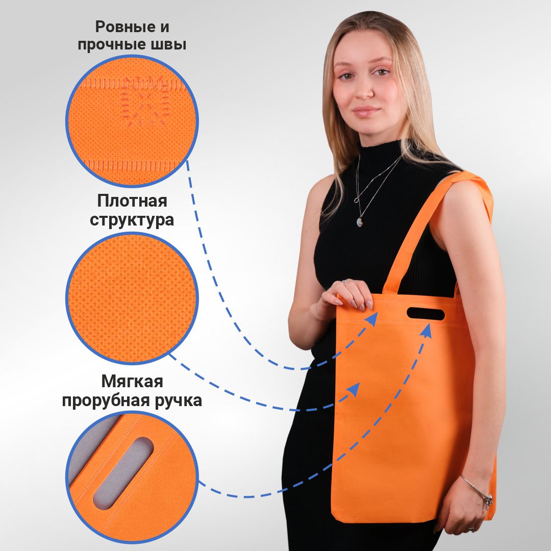 Сумка-шоппер из спанбонда с пришивными ручками 24 см, оранжевая, 35 х 40 см