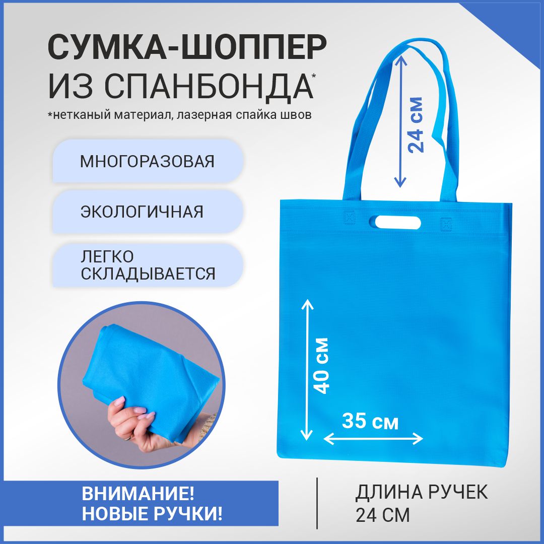 Многоразовый шоппер из нетканого материала с надежными пришивными ручками. Сумка из спанбонда приятная на ощупь, легкая и компактная.